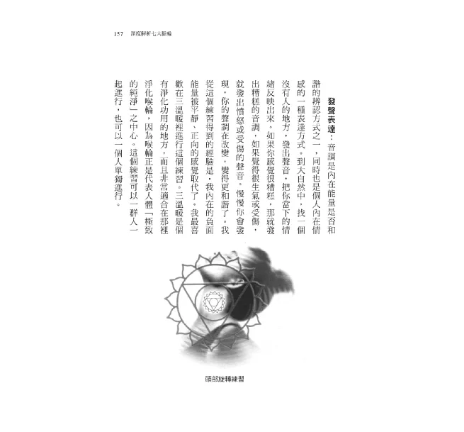 ª 書中提出了檢視脈輪平衡與否的方式,供讀者自我評估,並收錄有多種相應的練習。書末更有多幅手位圖示,清楚示範如何施予靈氣。